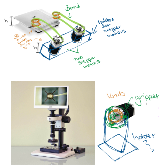 The movement mechanism consists of rubber bands connecting to the knobs and the stepper motors.